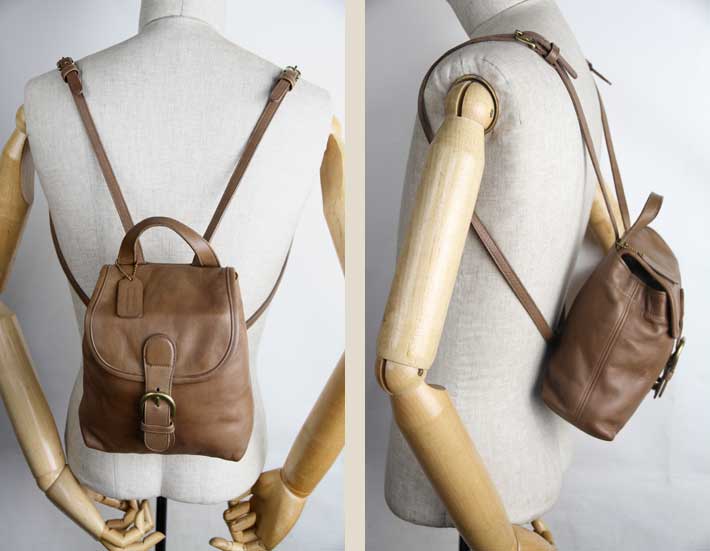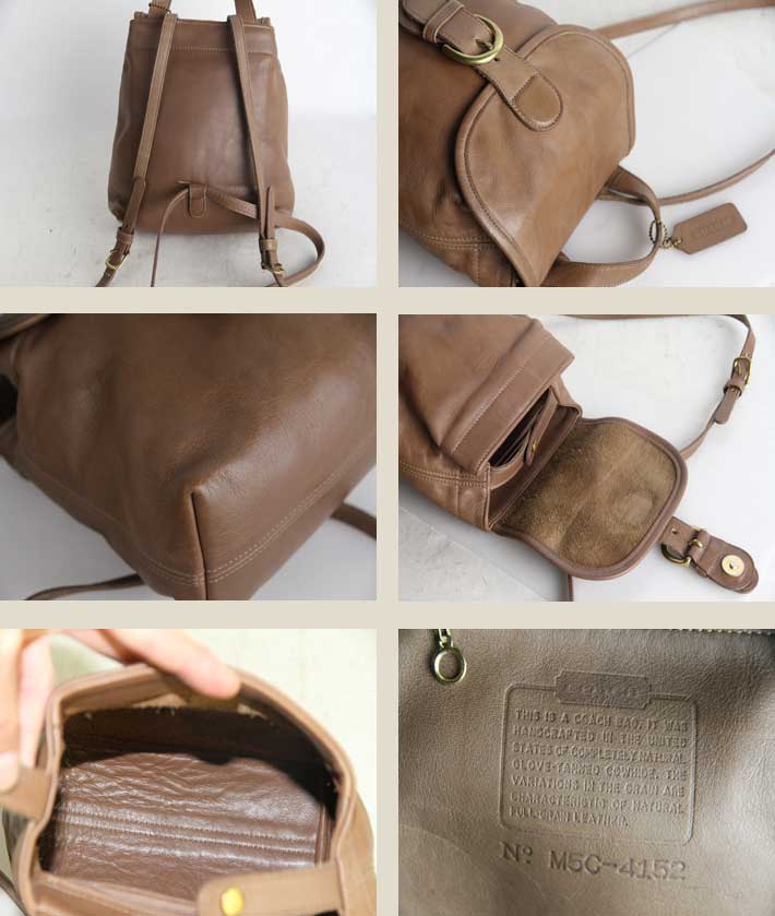 1990年代コーチ COACH小型レザーリュック(バッグパック) 肉厚な牛革(カウハイド)が使用です!! 1. 色は茶色です。