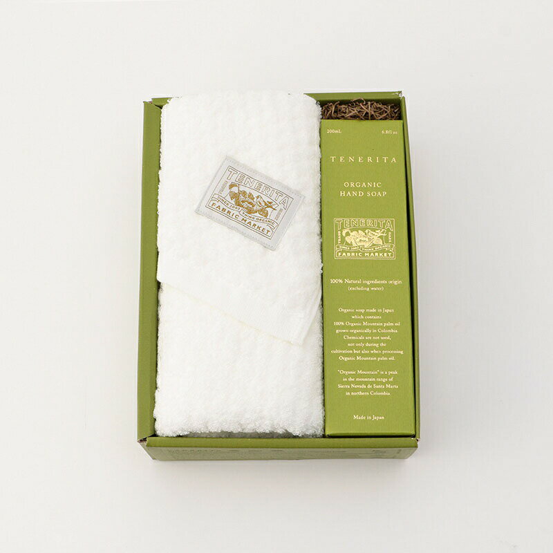 超甘撚りスクウエアジャカードフェイスタオル&ORGANIC HAND SOAPセット(ホワイト) 日本製 | テネリータ TENERITA